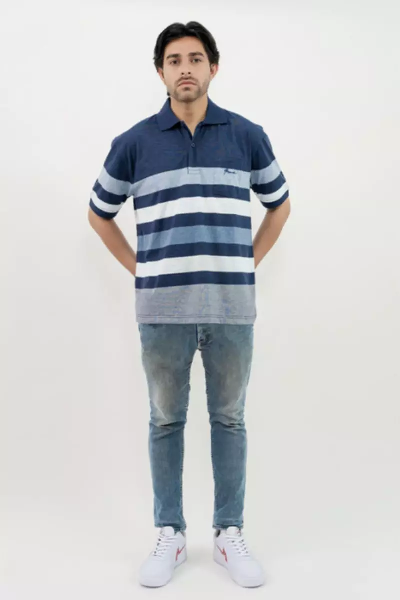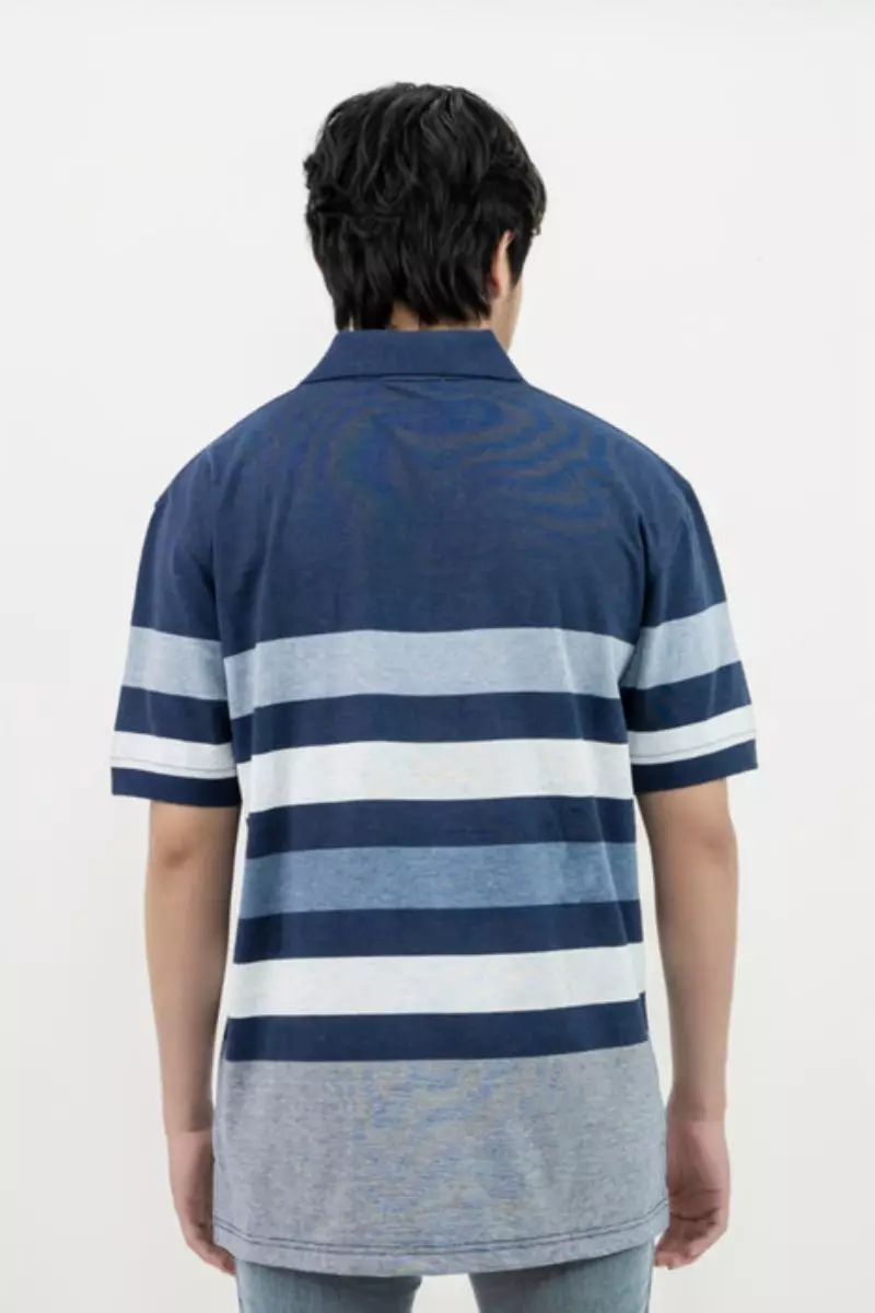 Hassenda Man Kaos Polo Motif Salur Pria Katun Cobalt Blue