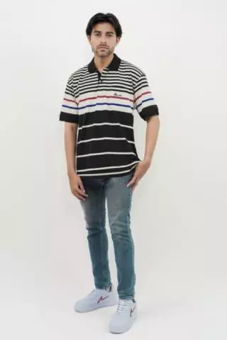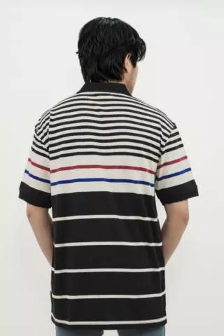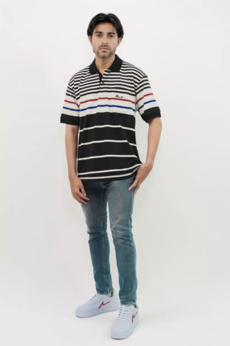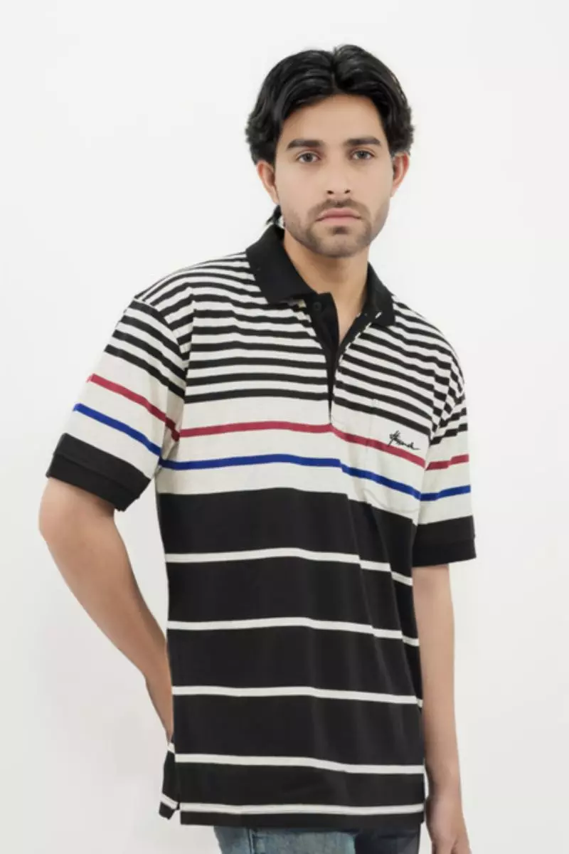 Hassenda Man Kaos Polo Motif Salur Pria Katun Onyx Black
