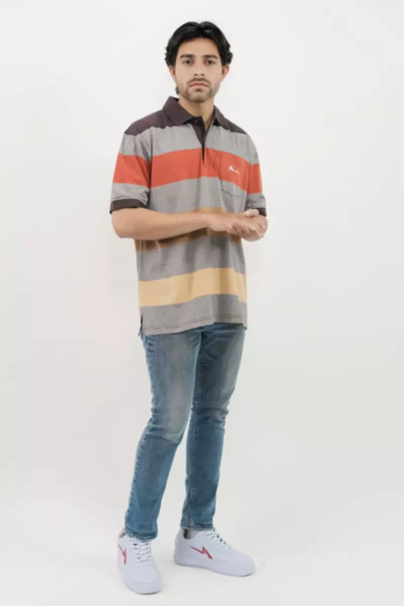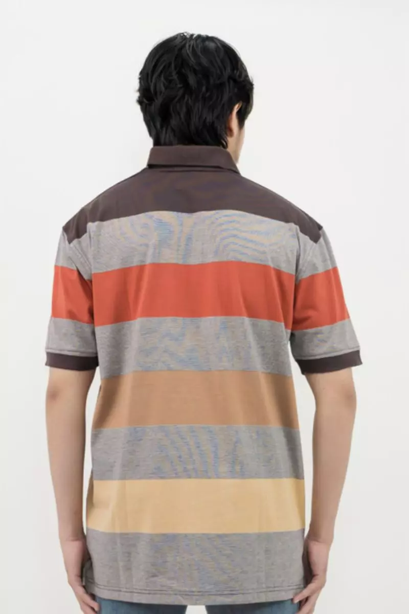 Hassenda Man Kaos Polo Motif Salur Pria Katun Walnut Brown