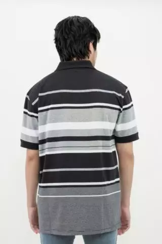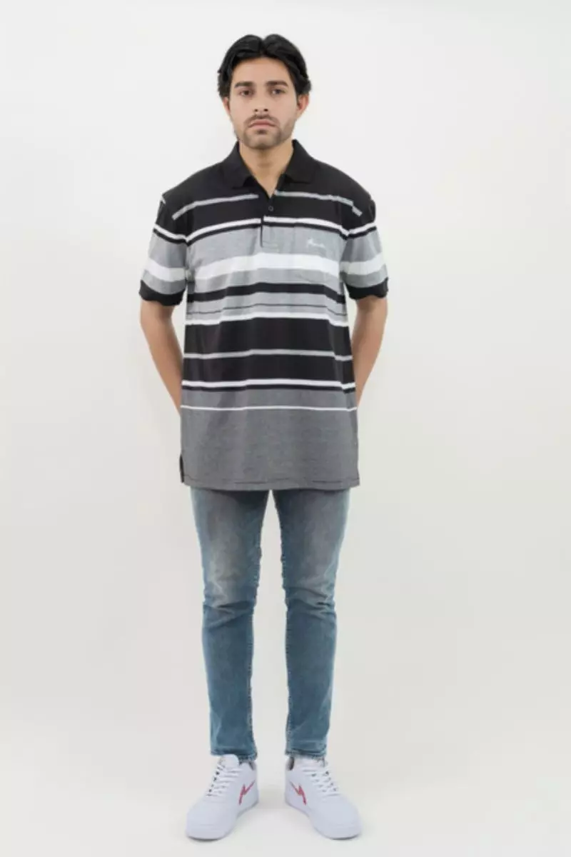 Hassenda Man Kaos Polo Motif Salur Pria Katun Midnight Black