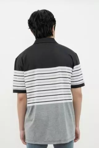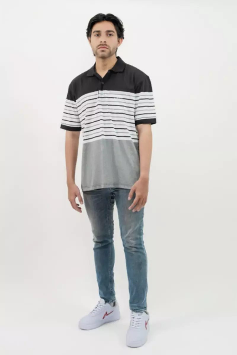 Hassenda Man Kaos Polo Motif Salur Pria Katun Ebony Black
