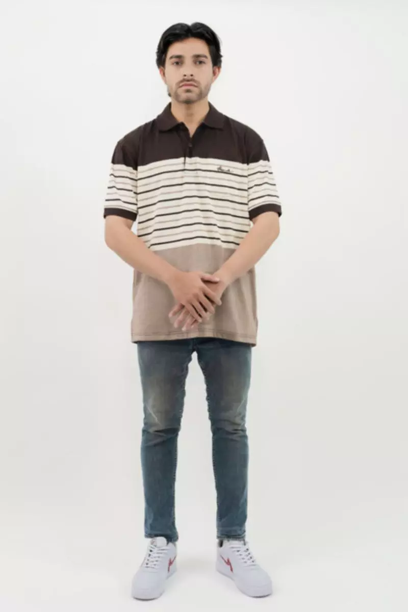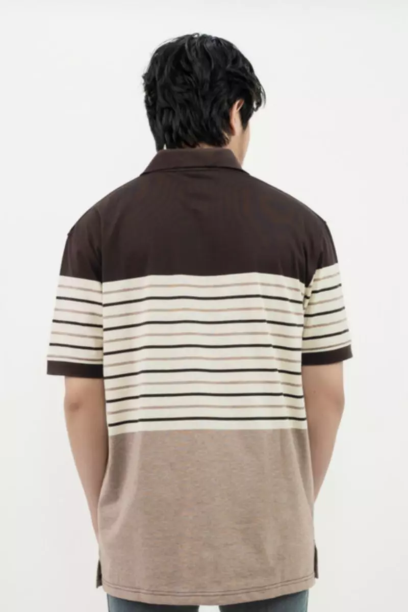 Hassenda Man Kaos Polo Motif Salur Pria Katun Walnut Brown