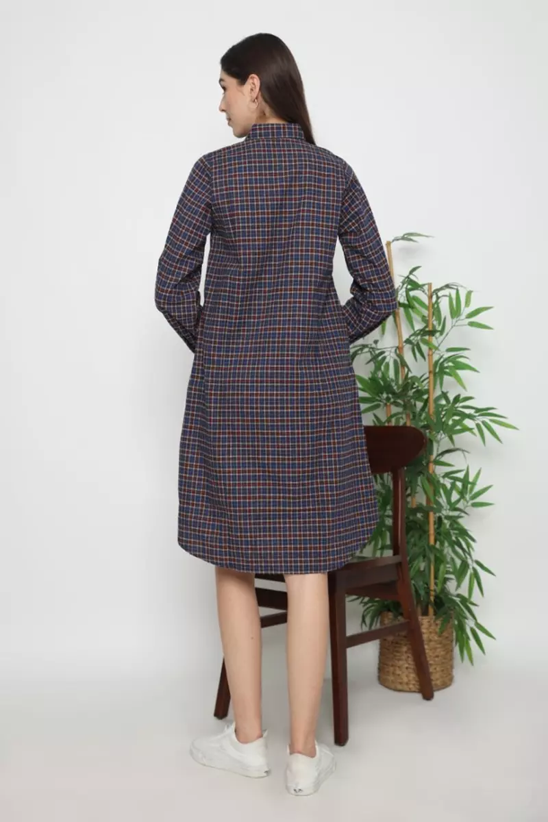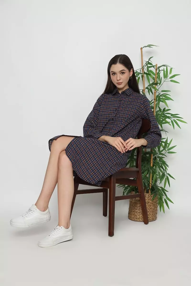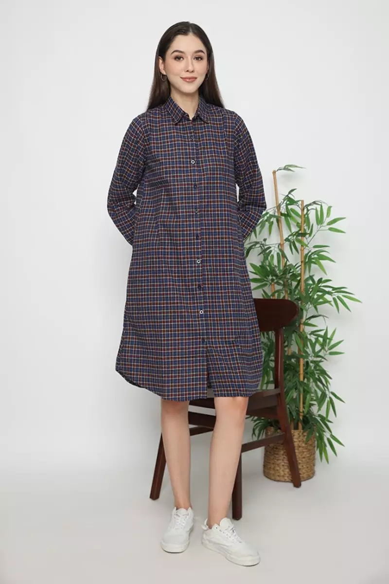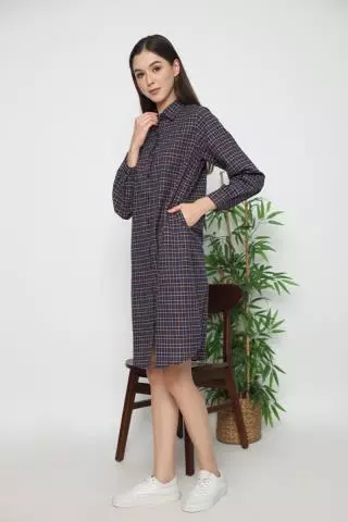 Puricia Dress Midi Wanita Tunik Falisha Navy Cobalt