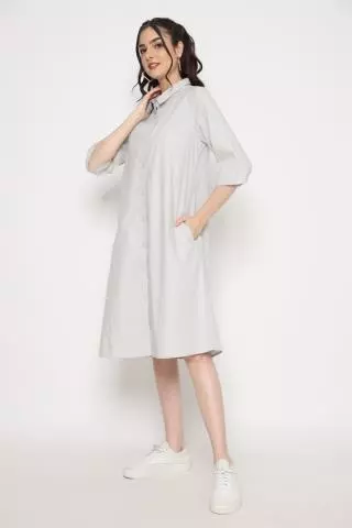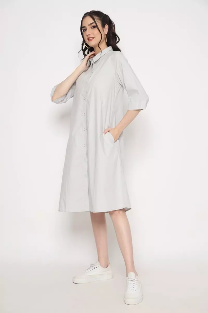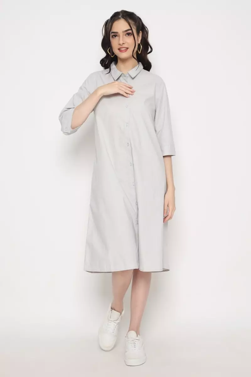 Puricia Dress Wanita Polos Freya Light Gray