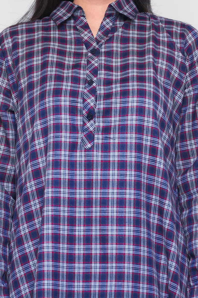 Puricia Dress Flanel Kotak Amira Navy
