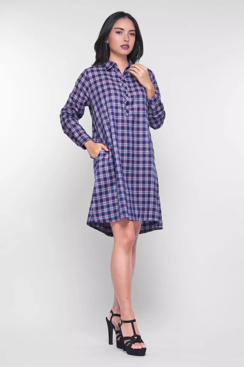 Puricia Dress Flanel Kotak Alisha Navy
