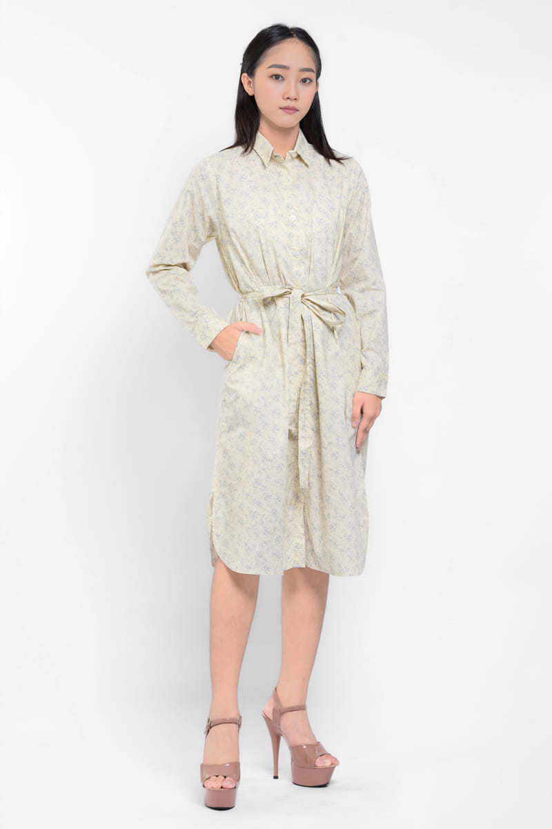 Puricia Dress Wanita Midi Motif Blaire Cream