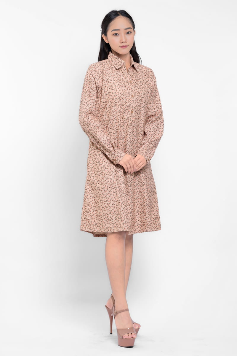 Puricia Dress Wanita Midi Motif Katun Fayre Ivory
