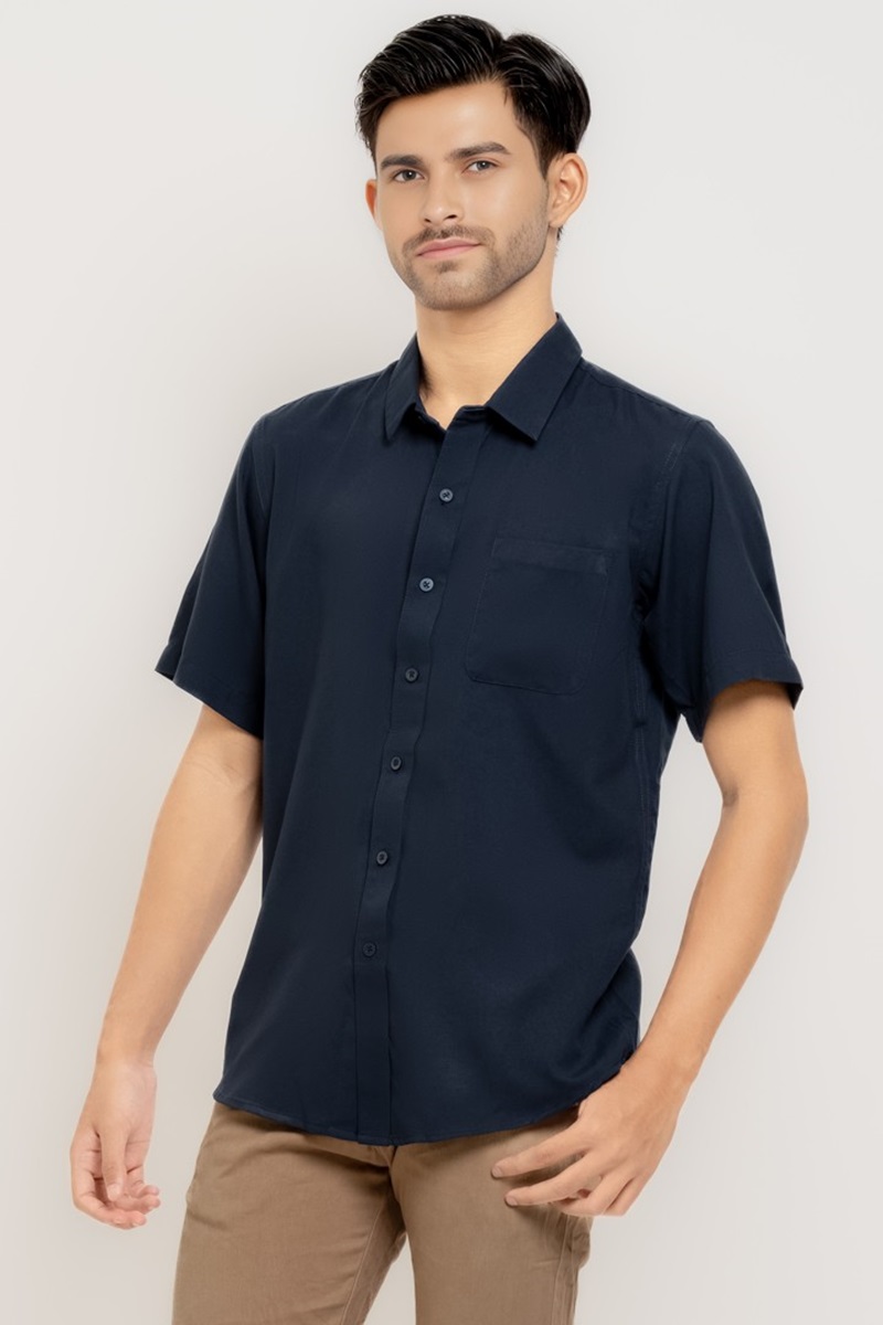 Hassenda Kemeja Pendek Polos Pria Basic Katun Seavey Berry Blue