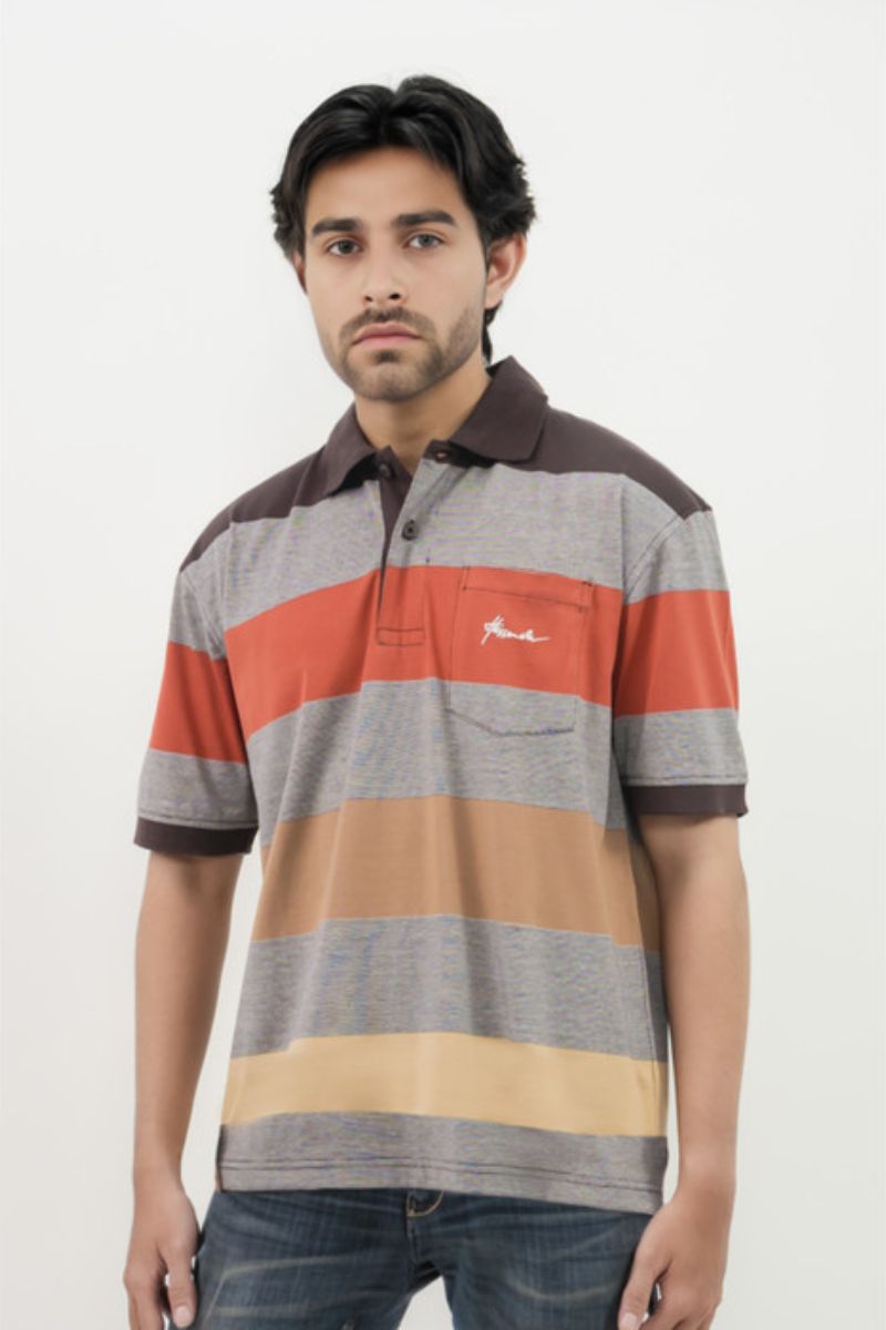 Hassenda Man Kaos Polo Motif Salur Pria Katun Ginger Grey