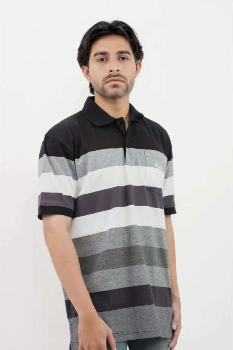 Hassenda Man Kaos Polo Motif Salur Pria Katun Charcoal Black