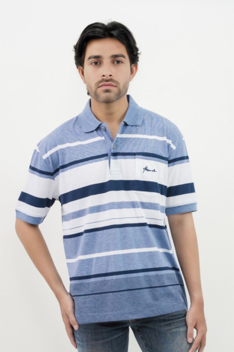 Hassenda Man Kaos Polo Motif Salur Pria Katun Cornflower Blue