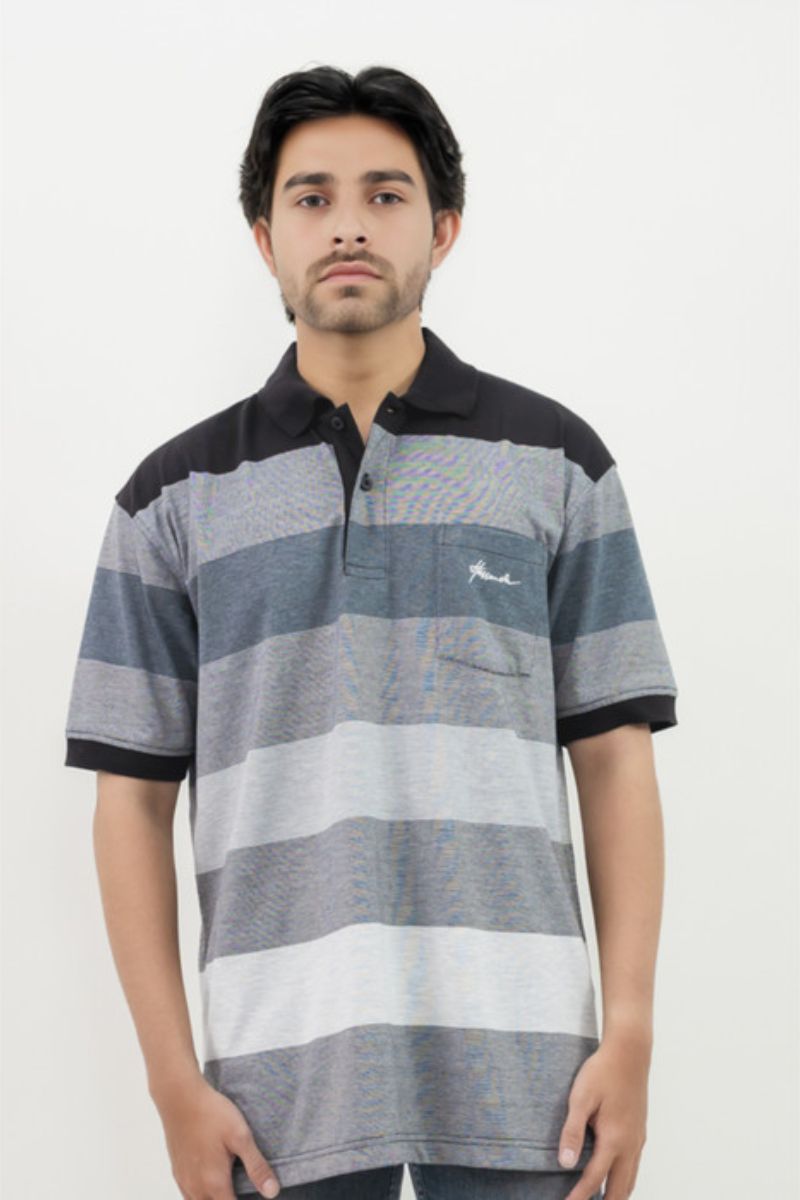 Hassenda Man Kaos Polo Motif Salur Pria Katun Steel Gray