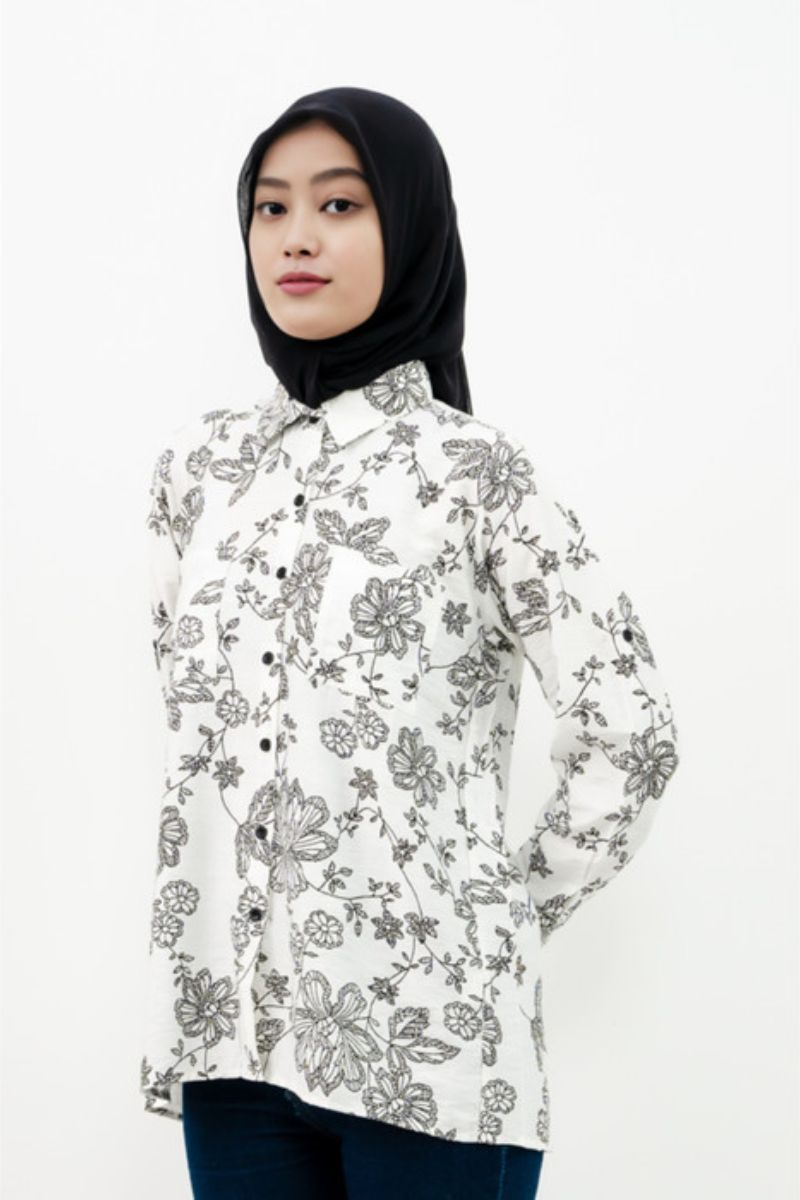 Puricia Blouse Wanita Motif Jihyo White