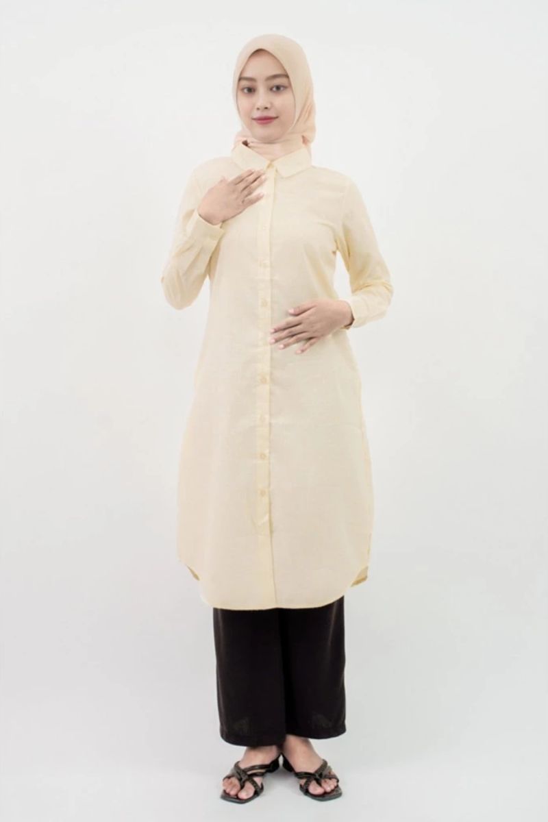 Puricia Dress Midi Wanita Tunik Hagia Cosmic Latte
