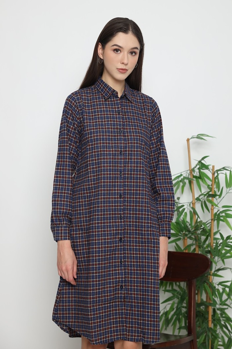 Puricia Dress Midi Wanita Tunik Falisha Navy Cobalt