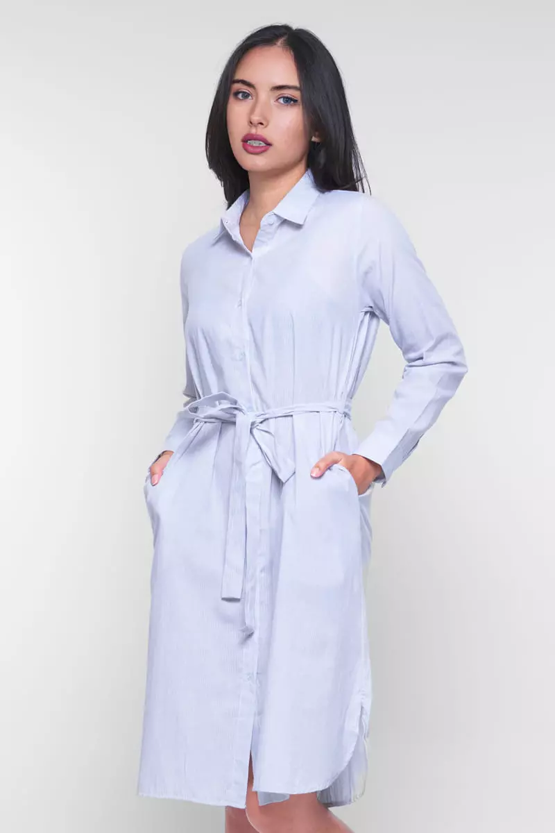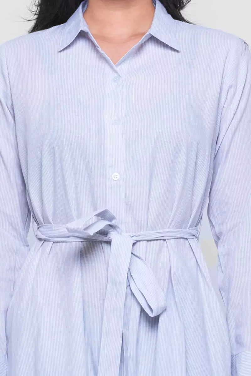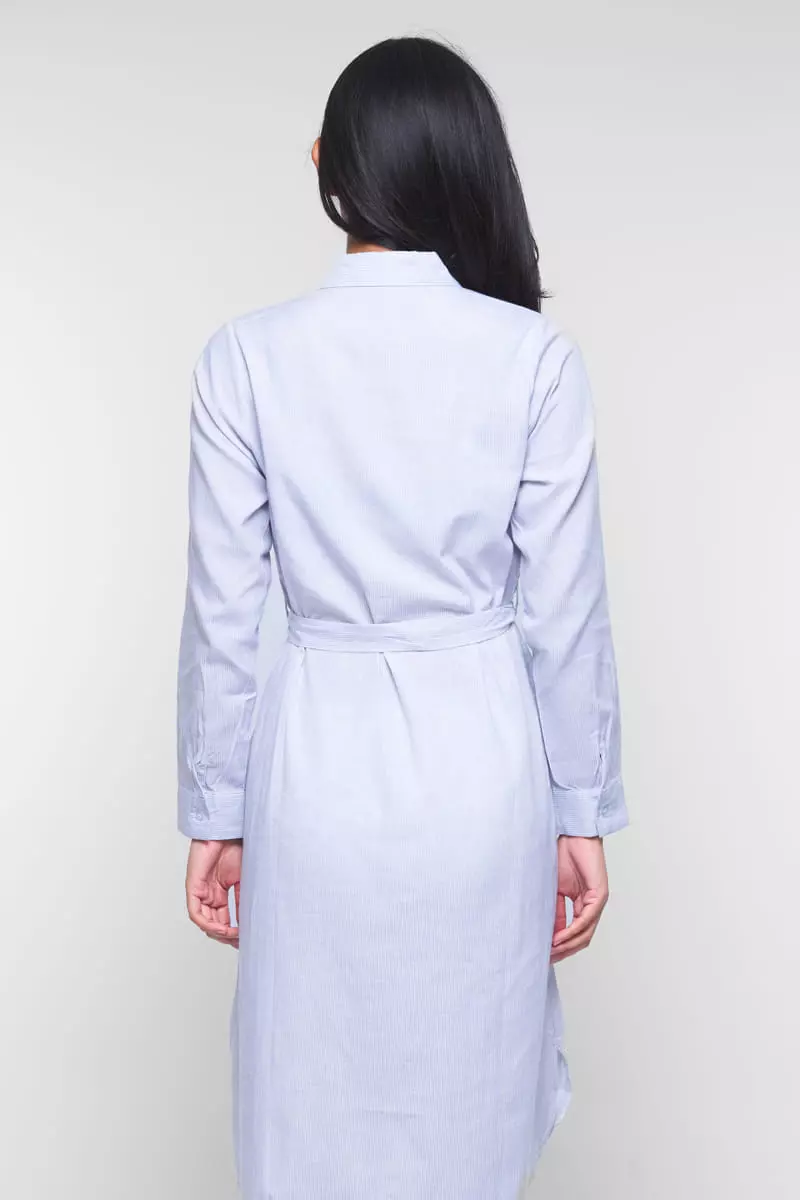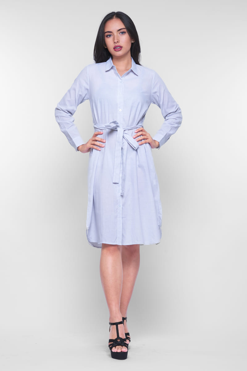 Puricia Stripe Dress Lengan Panjang Aliya Biru Muda