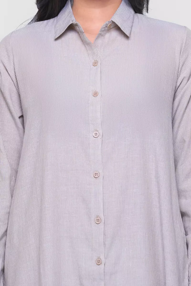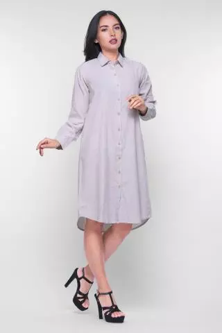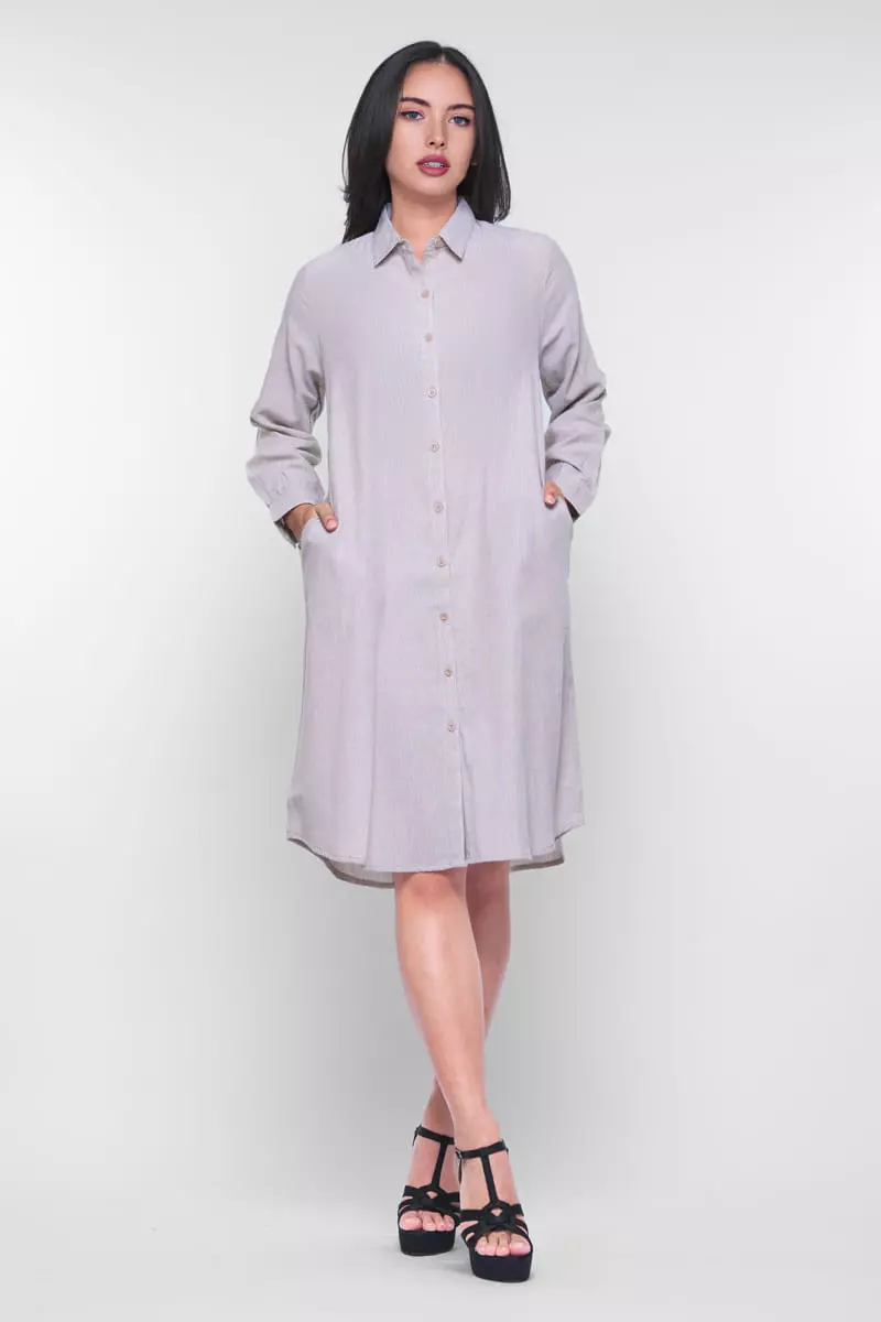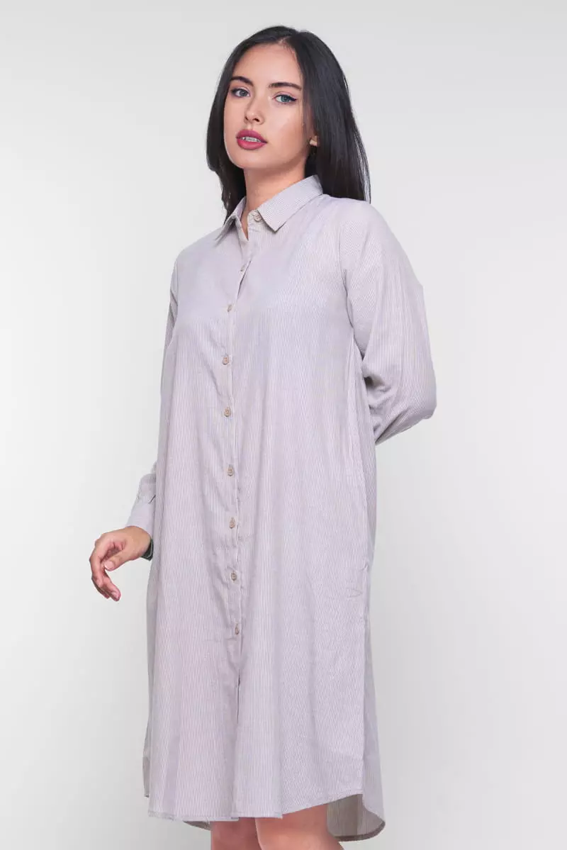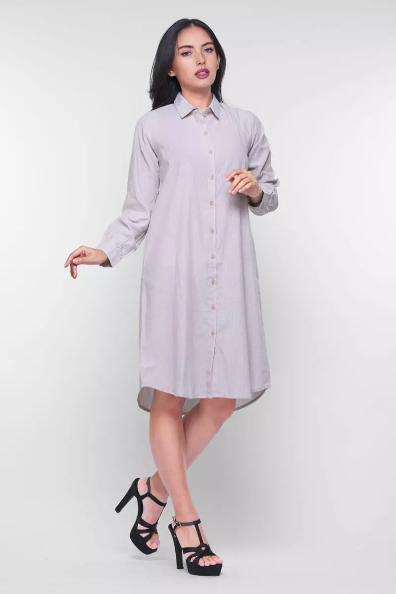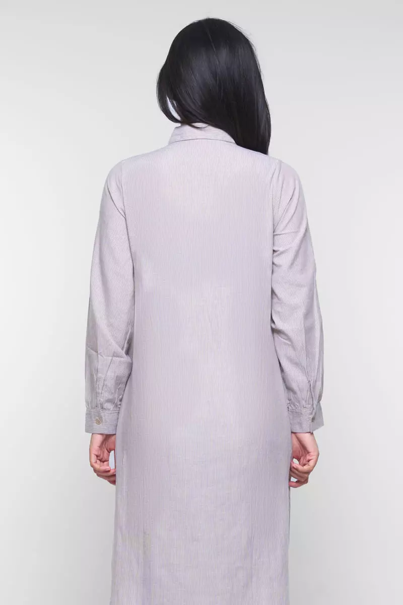 Puricia Dress Stripe Lengan Panjang Aleya Abu Muda