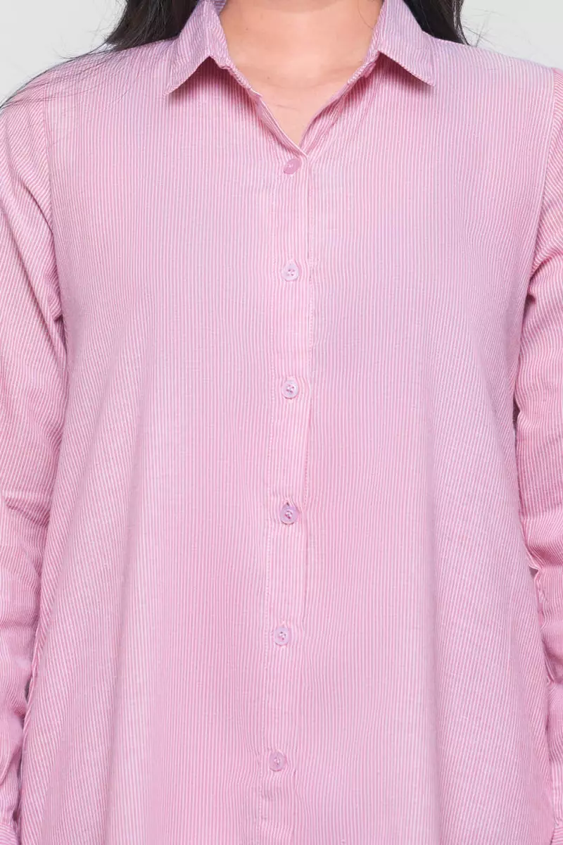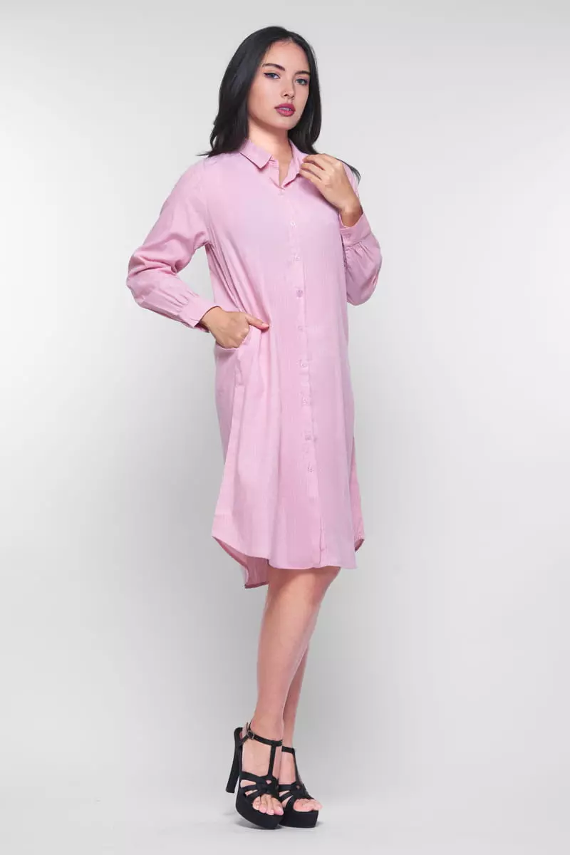 Puricia Dress StripeLengan Panjang Aleya Pink